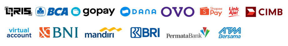 - QRIS : BCA, Gopay, Dana, Ovo, Shopee Pay, Link Aja, CIMB, Astra Pay, dll.