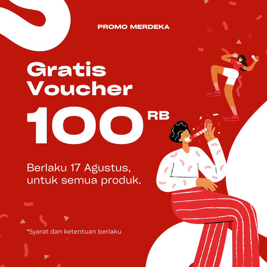 Voucher 100rb, minimal order 400rb, kode : MERDEKA100K